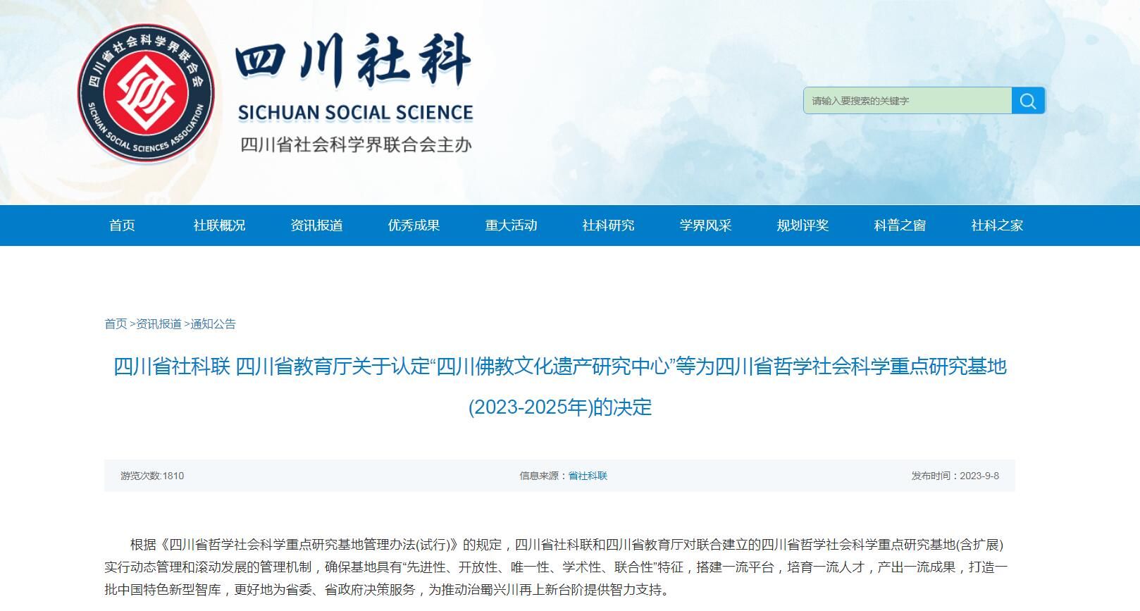 2023年上半年,四川省社科联和四川省教育厅组织专家对四川省社会科学重点研究基地、高水平研究团队进行了5年一度的合格评估,学校“中国酒史研究中心”“四川思想家研究中心”两个四川省社会科学重点研究基地和“现代新儒学及其文化影响研究团队”顺利通过合格评估。中国酒史研究中心被授予四川省“优秀重点研究基地”称号。