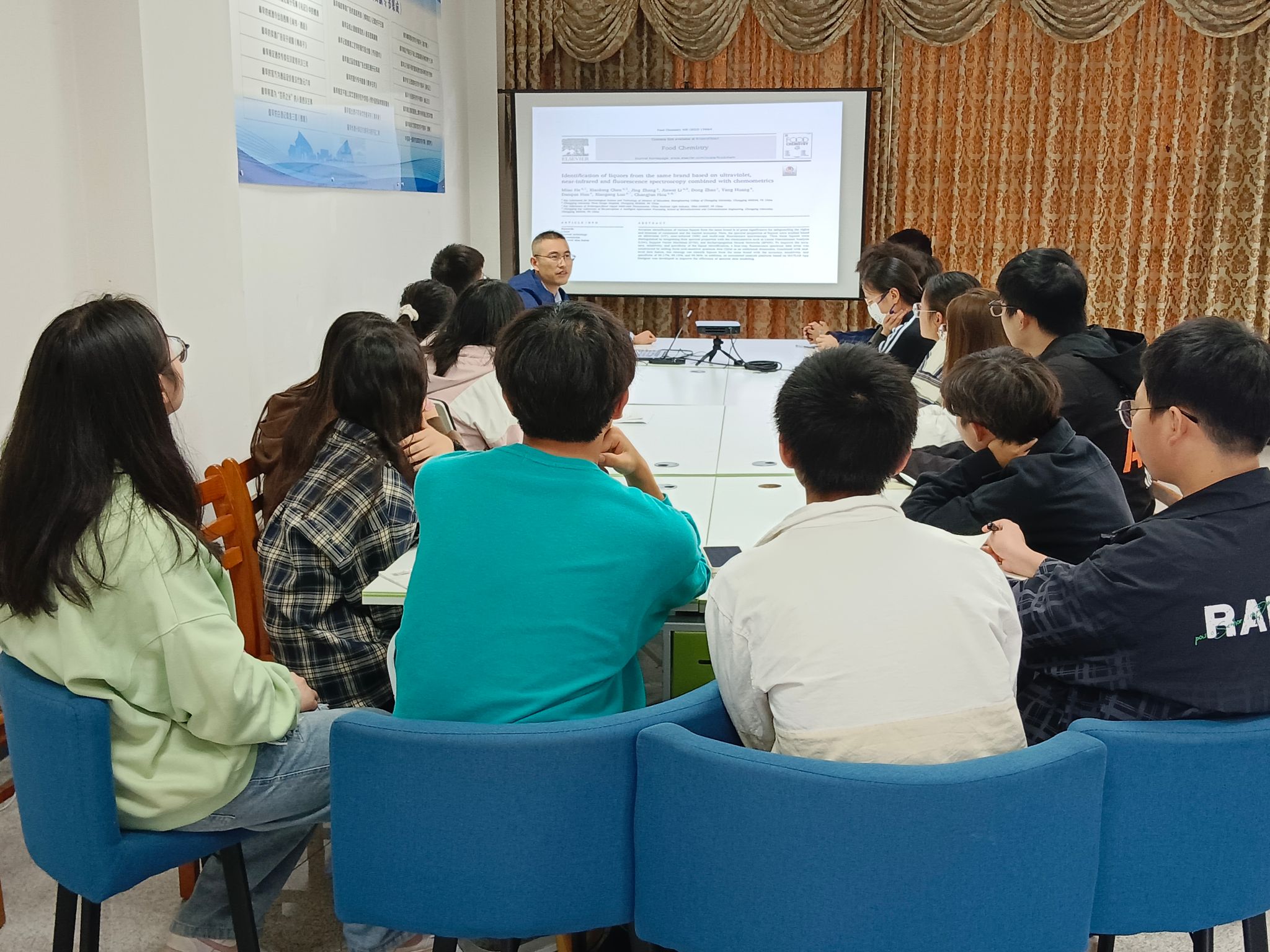 四川省高校重点实验室主任谭超教授向同学们介绍和分享了中国酿酒发展的历史与专业学习的联系。学生充分了解了中国白酒文化历史的同时,也能领略到化学学科的新方法和新理念在酒产业的应用,加深了学生对第二课堂学术科技与创新创业类活动的理解,对于个人后期的职业发展具有借鉴意义,也有利于提高了专业学习的认同感、自豪感和自信心。