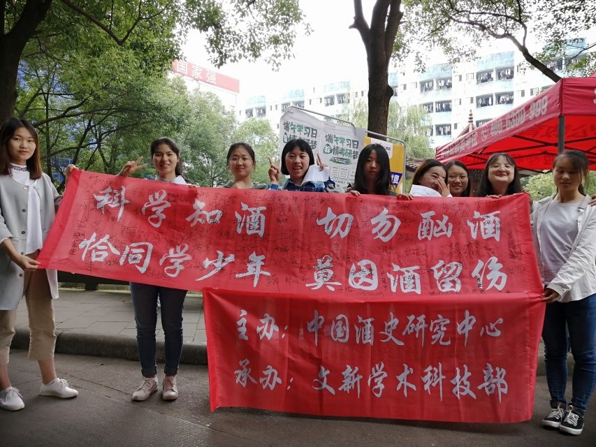 中国酒历史悠久、酒色晶莹、酒香馥郁,历来受中国人喜爱,同时在“中国白酒之都”宜宾,酒更是具有独特的意义和影响力。为了宣传中国酒深厚的文化底蕴,同时在毕业之际提醒广大师生“科学、文明、理性”对待饮酒。2019年5月29日,由中国酒史研究中心主办,宜宾学院文学与新闻传媒学院学术科技部承办的“严禁酗酒,健康生活”主题文化活动在宜宾学院二平台拉开序幕。