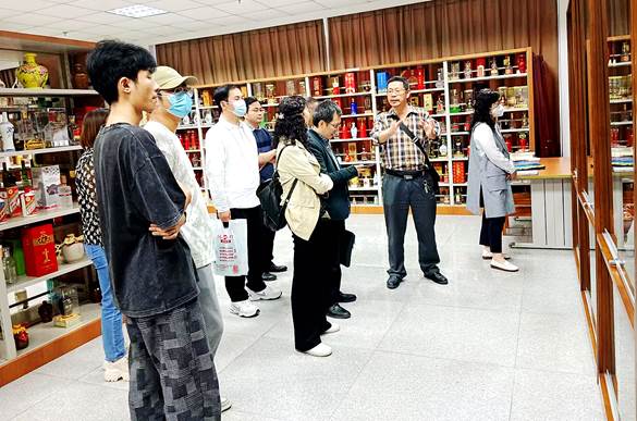 第二阶段在中国酒史研究中心中国酒包装陈列馆、酒史文化馆进行。刘首昌副教授带领马克思主义学院叶林书记一行,先后参观了酒史中心专业资料室、酒包装陈列馆与酒史文化馆。叶林书记一行表示,希望充分利用中国酒史研究中心酒包装陈列馆和酒史文化展览馆,可以进一步丰富马克思主义学院的教学内容与教学形式,中国酒史研究中心可以为学生提供看得见、摸得着的文化元素,为立德树人提供支撑。
